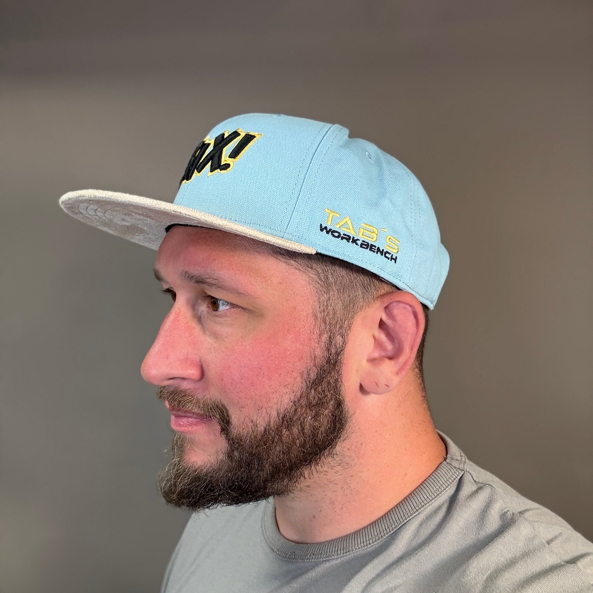 Unisex, stylisch und absolut einzigartig: Die hellblaue Krone trifft auf einen beigen Schirm, dazu der fette ZEFIX!-Schriftzug vorne in Schwarz mit gelber Outline – ein echtes Statement. Rechts findest du den legendären Spruch "SO GNAU IS NO NIA NED GANGA" in Gelb, links das Label TAB’s Workbench in Gelb & Schwarz.